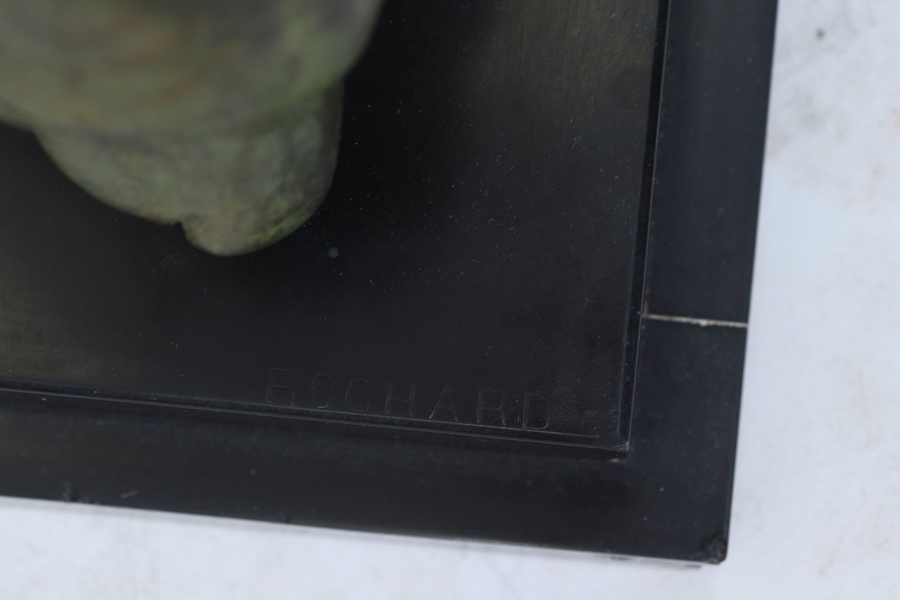 Signed ROCHARD to the base, the sculpture rests on a stepped black marble plinth, creating a strong contrast that enhances the patina of the bronze. The fluidity of the animal’s form is typical of Rochard’s ability to balance naturalism with Deco stylisation — a hallmark of his celebrated animalier work.