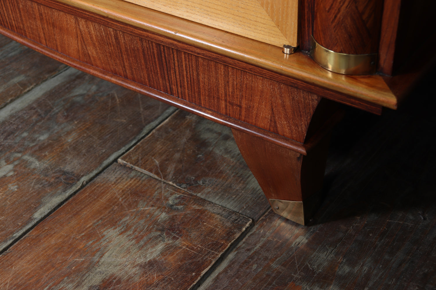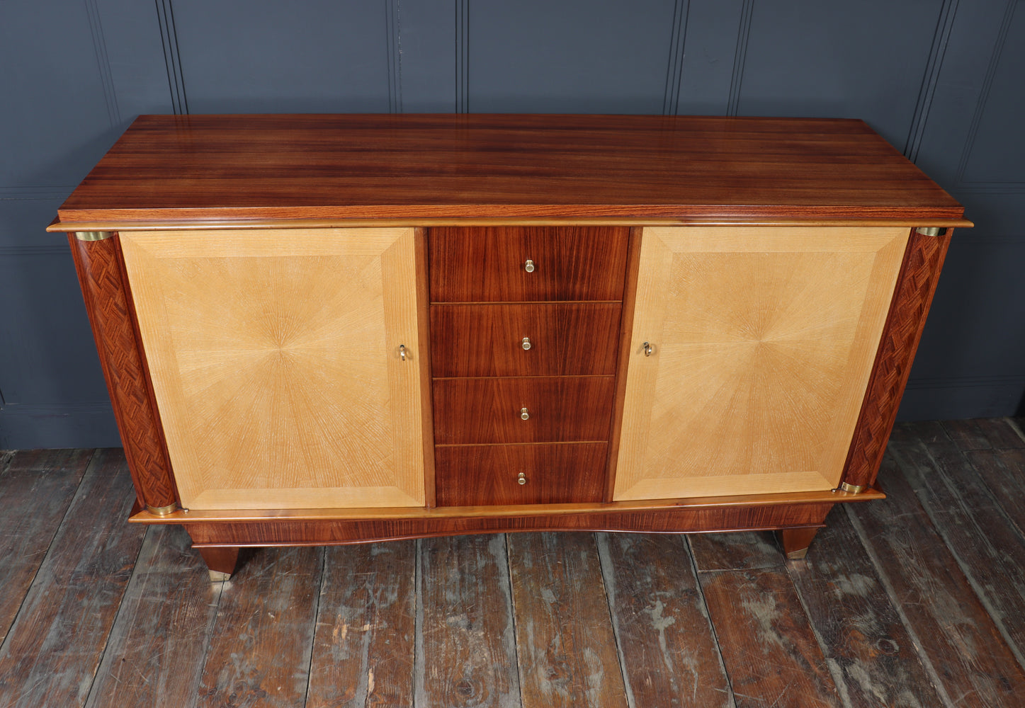 A striking French Art Deco sideboard, circa 1930s, crafted in richly figured rosewood with contrasting oak doors. This elegant piece exemplifies the refined craftsmanship and luxurious material combinations that defined French design of the period.